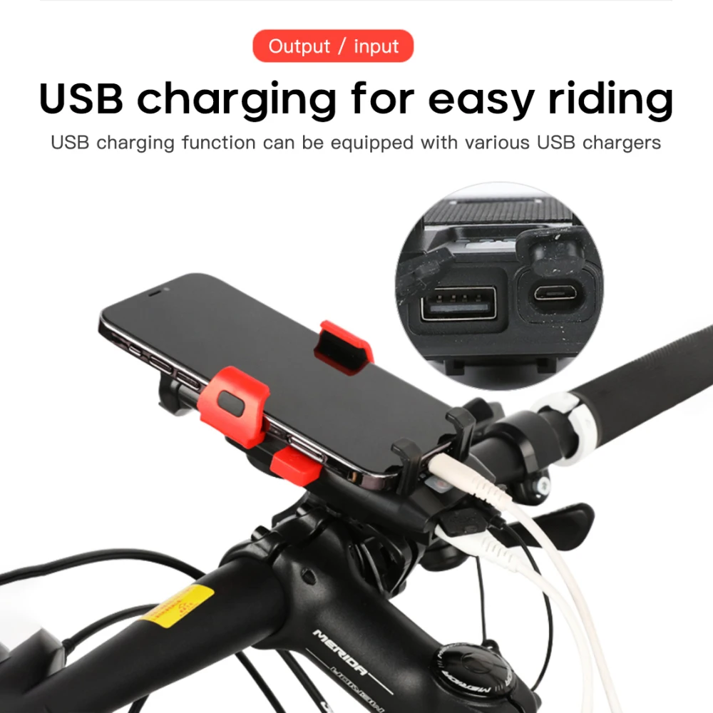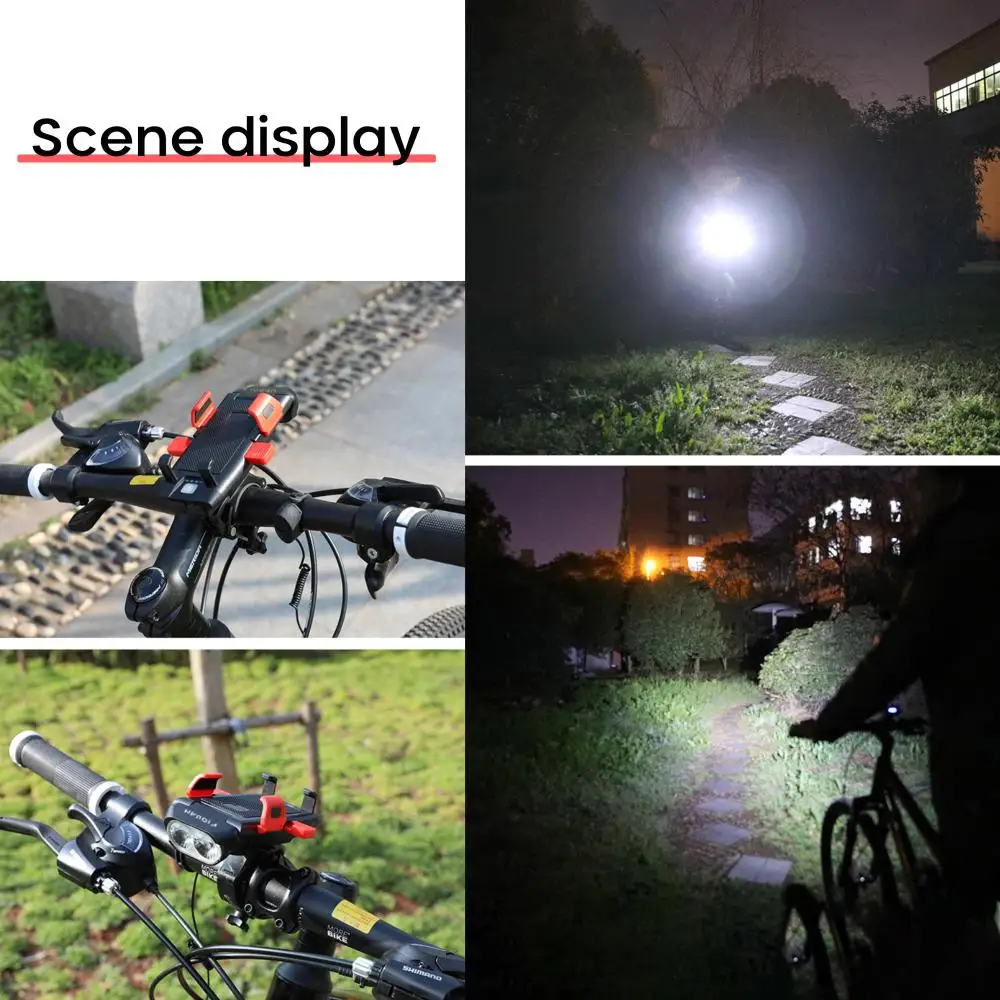 MTB Bike Front Light 1500 Lumens 3000mhA Waterproof Mobile Phone Holder Bicycle Headlight USB Charging Safety Warning Lamp