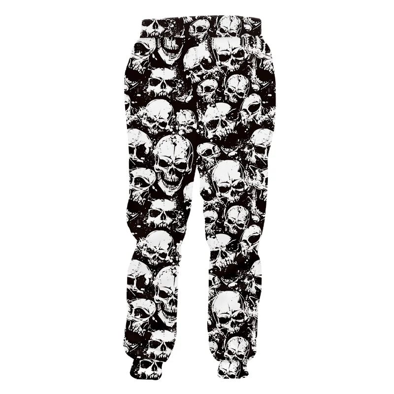 US $16.8 UJWI Fashion Men Casual Full Length Pants Harajuku 3D Skull Printed Joggers Sweat Pants Street Hip Hop Style Sweatpants Custom