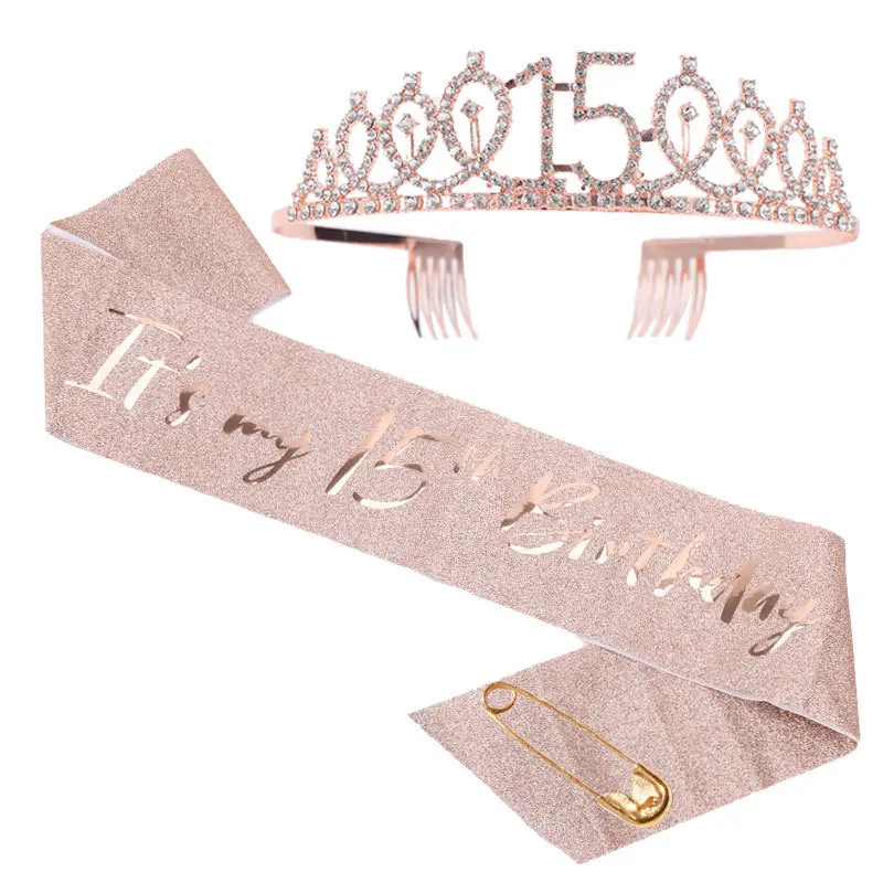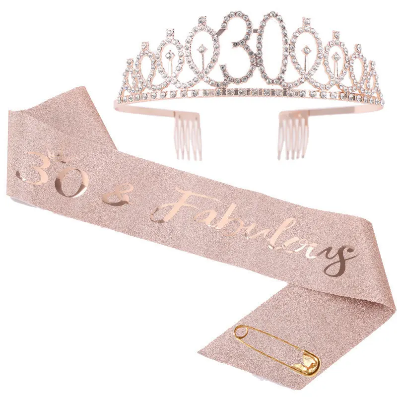 1. Perfect Birthday Ornament Set: Sash + Rhinestone Tiara.