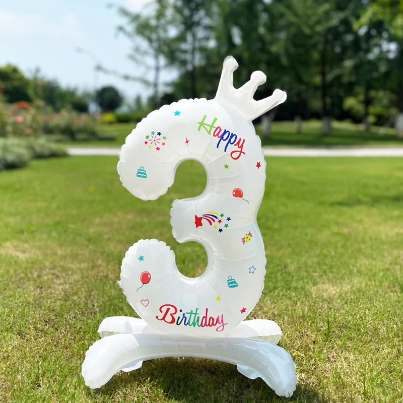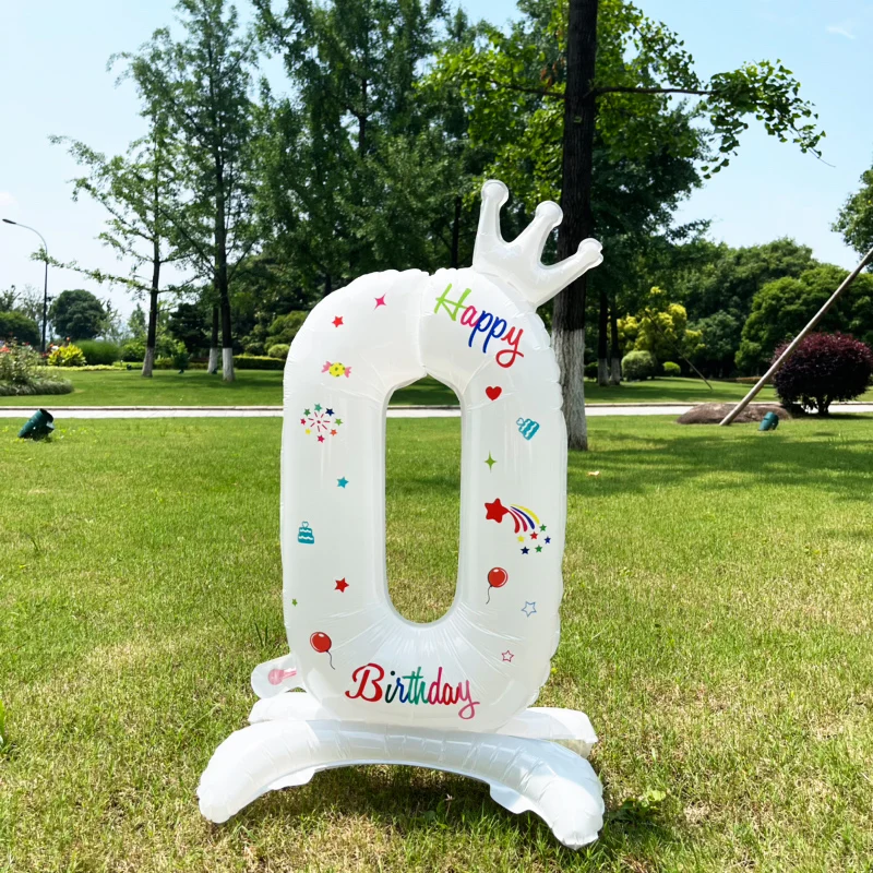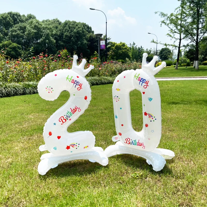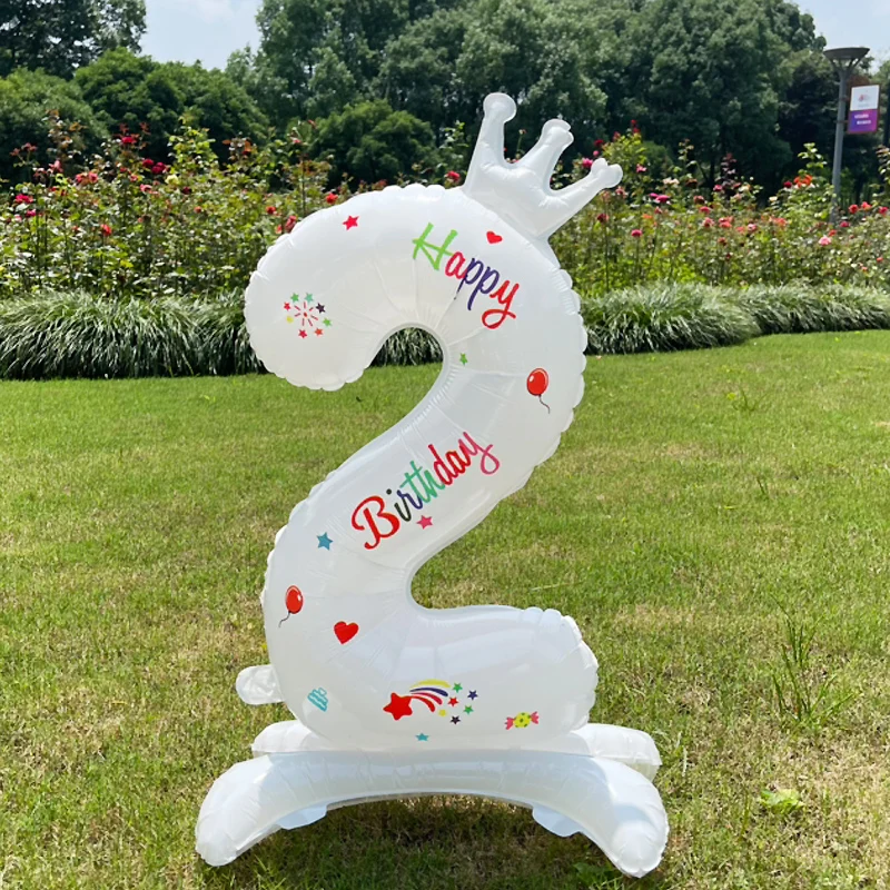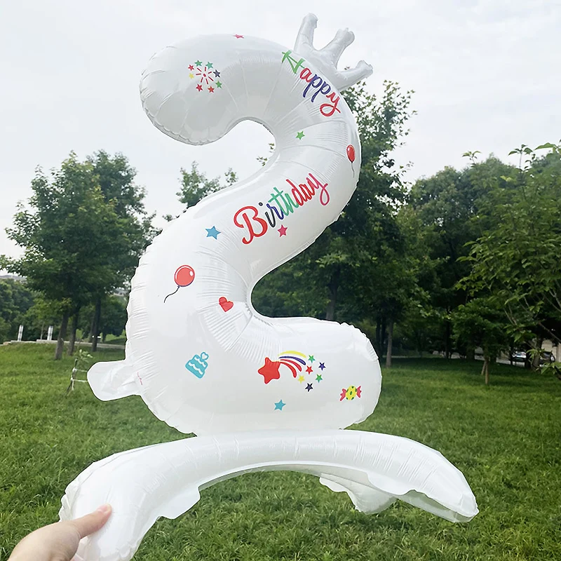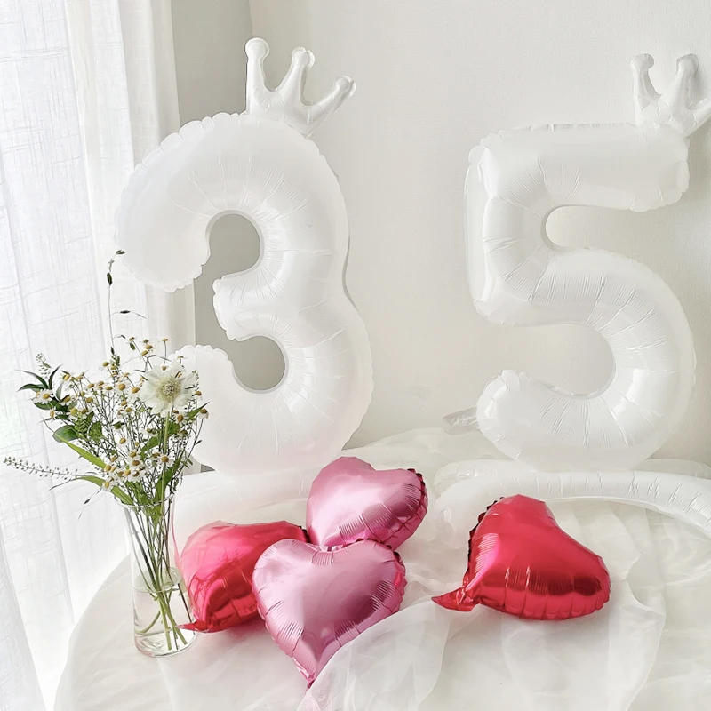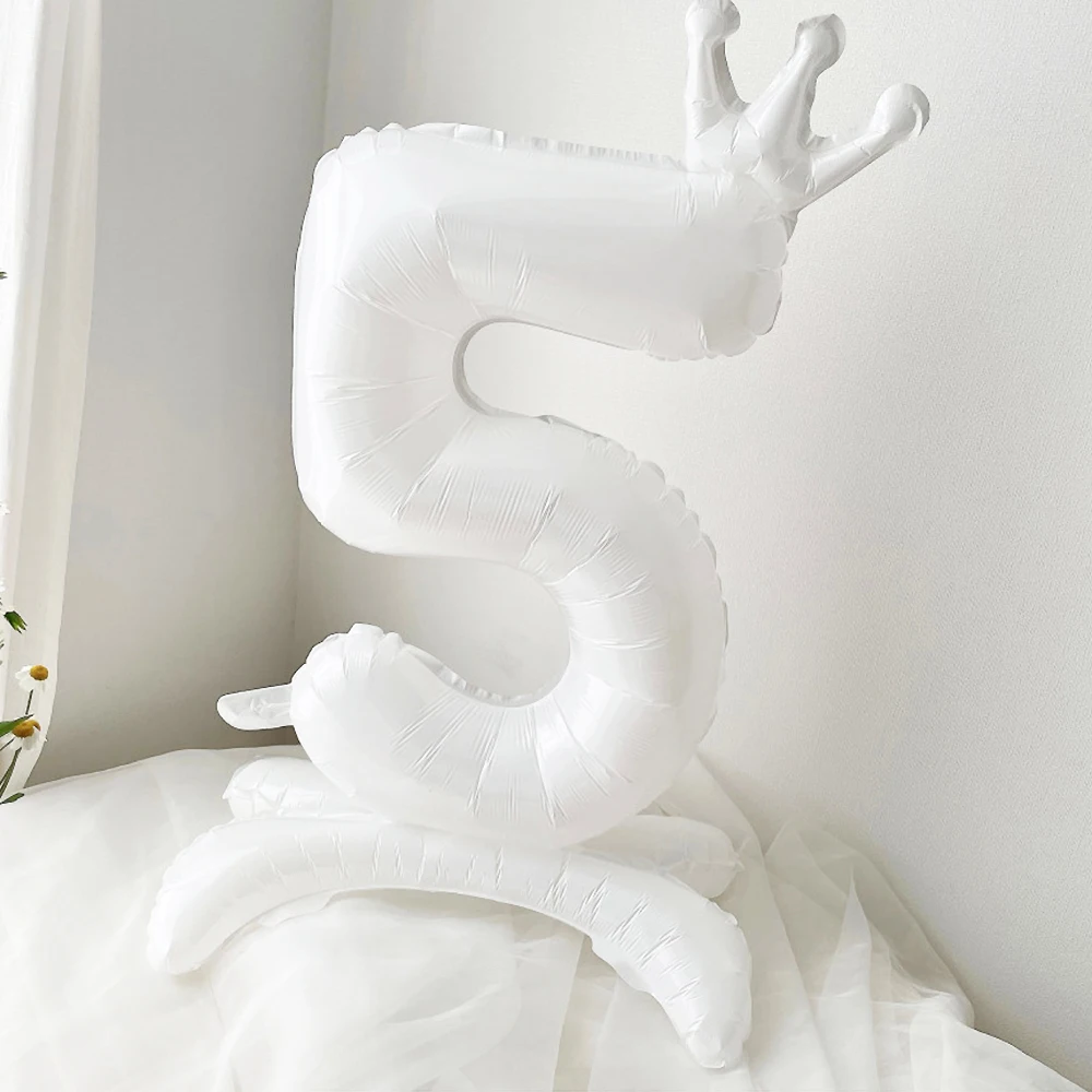 32Inch White Stand Number Balloon Mini Crown 0 1 2 3 4 5 6 7 8 9th Birthday Party Decoration Baby Shower Kids Toys Helium Globos