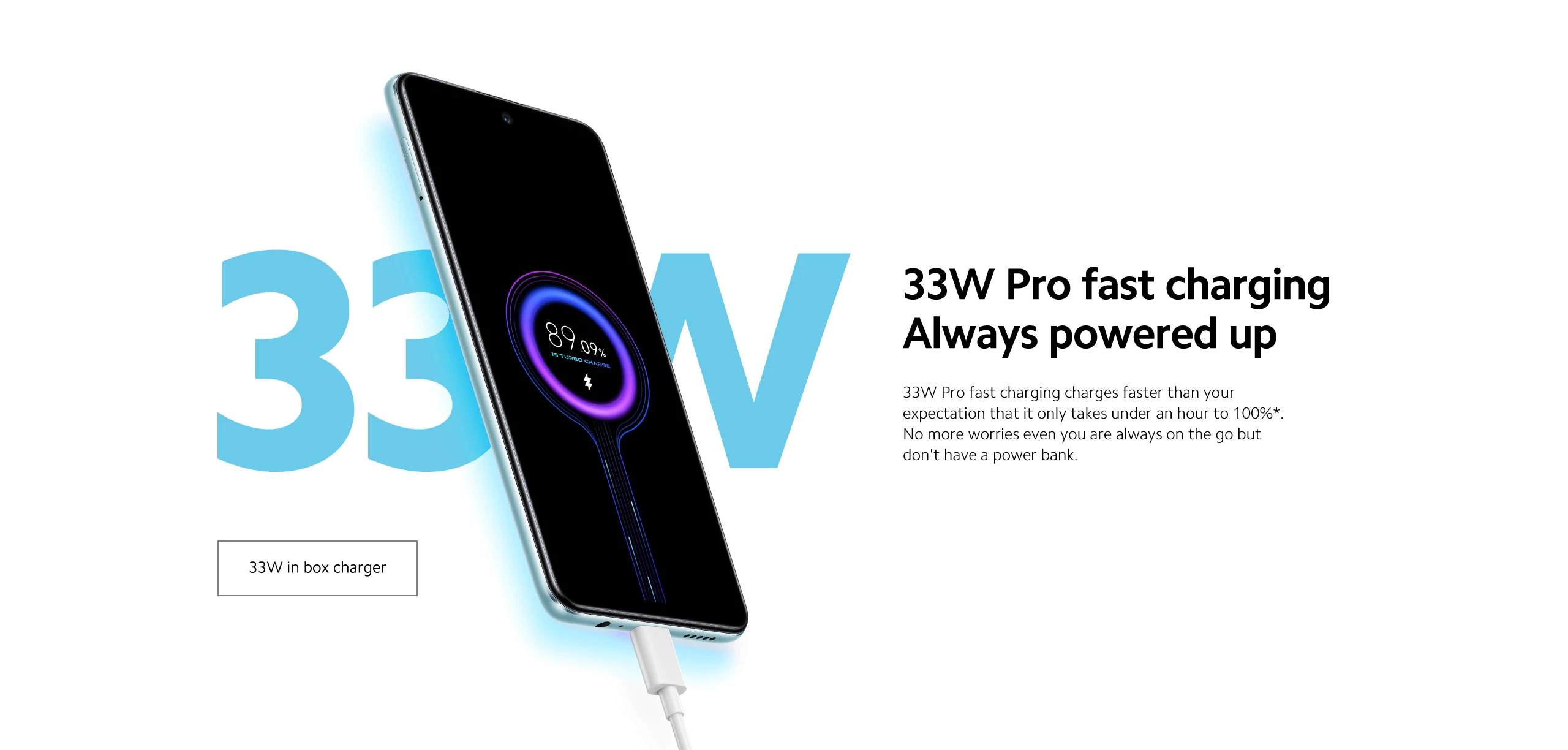 33W Pro fast charging charges faster than your expectation that it only takes under an hour to 100%*. No more worries even you are always on the go but don't have a power bank.