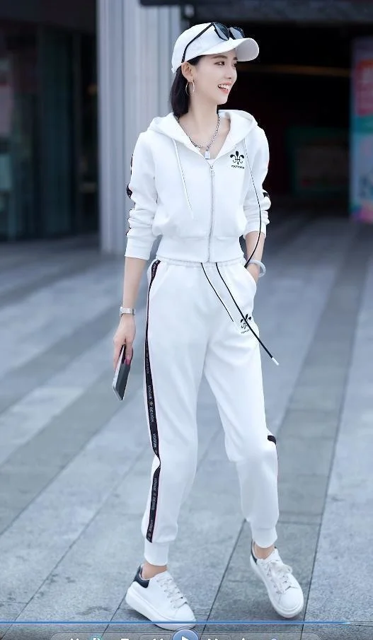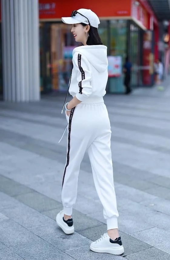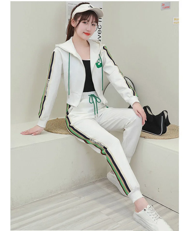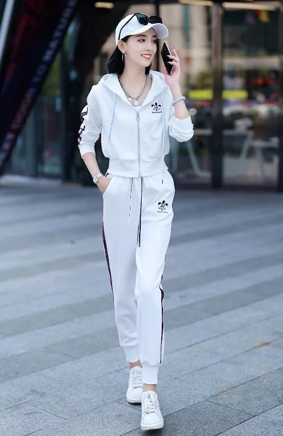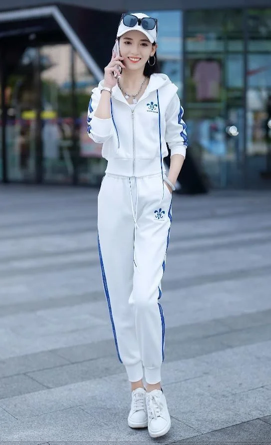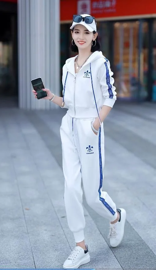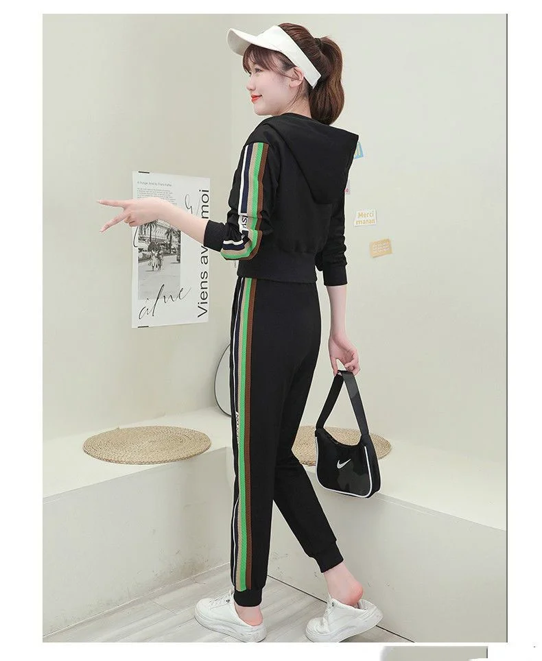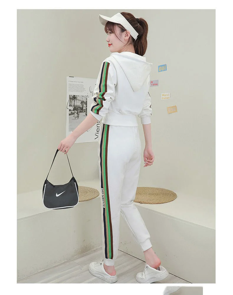 US $24.62 Women's Spring Autumn Hooded Sports Suit 2022 New Popular Fashion Leisure Cotton Zipper Jacket Corp Tops And Pants Two Piece Set
