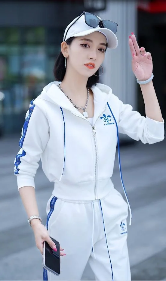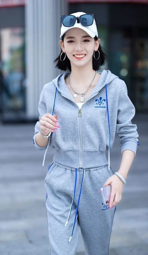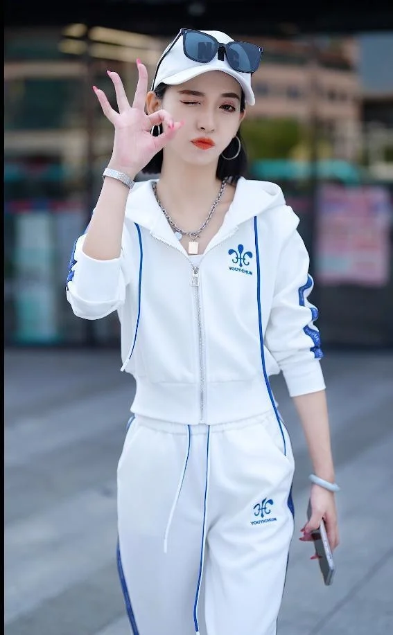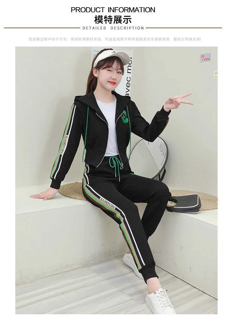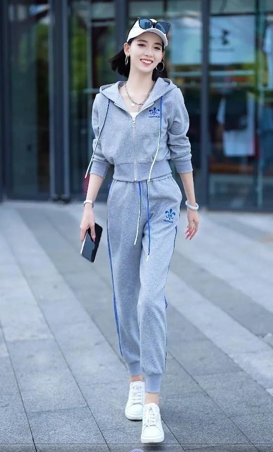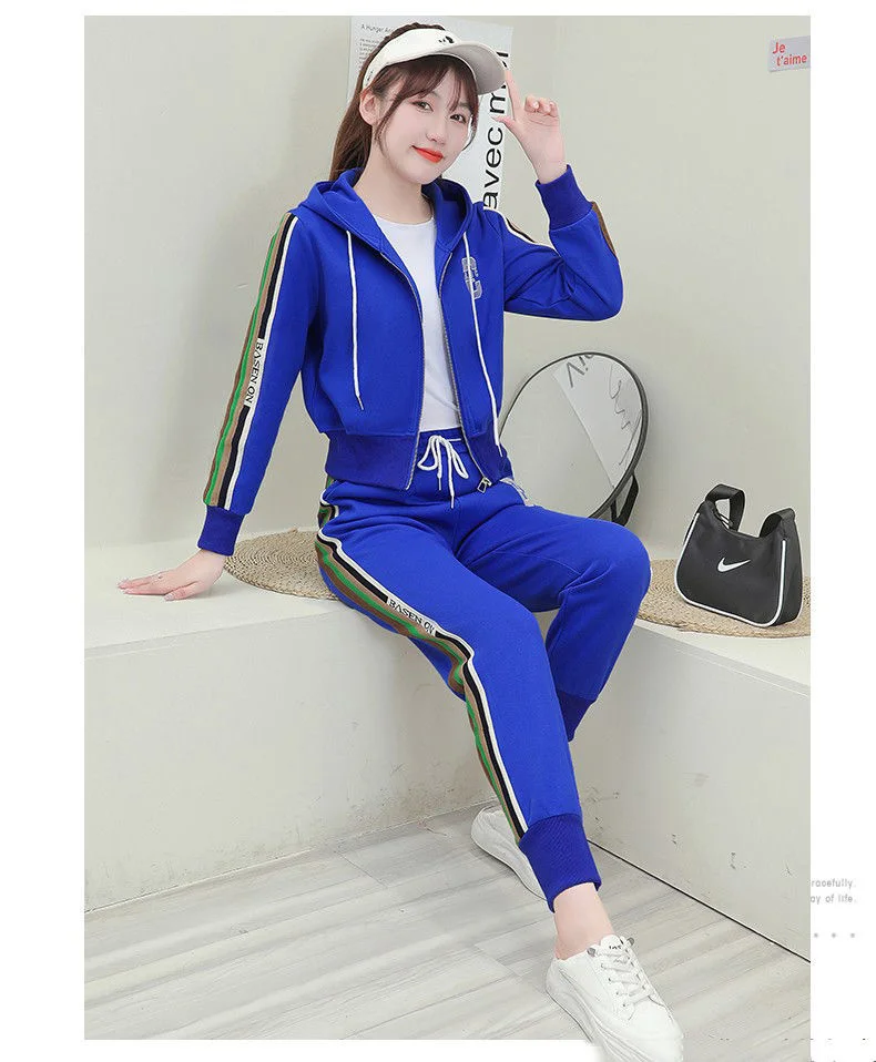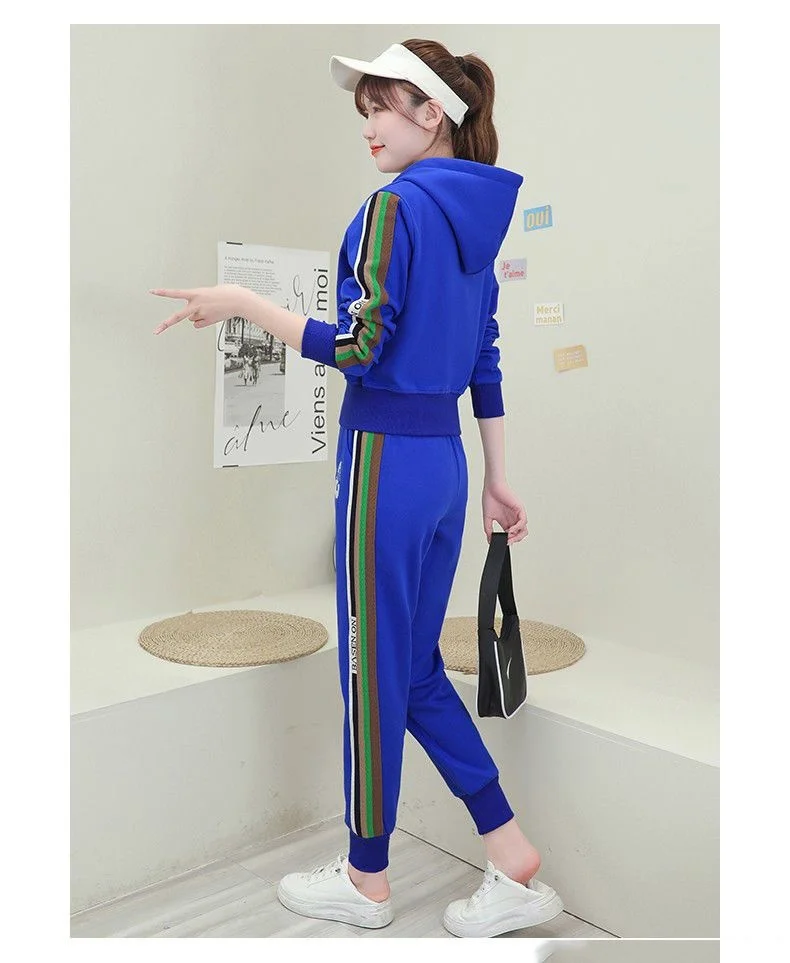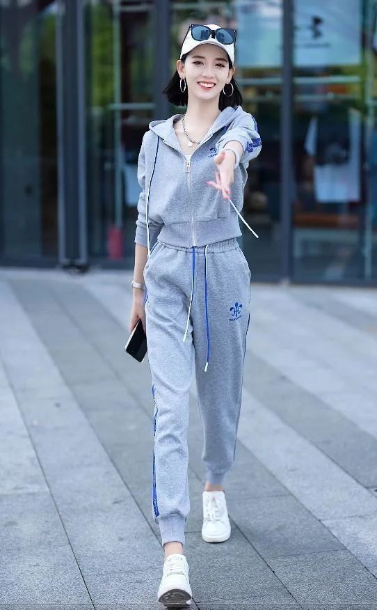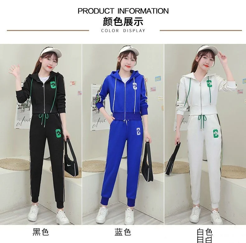 UncategoriesUS $24.62 Women's Spring Autumn Hooded Sports Suit 2022 New Popular Fashion Leisure Cotton Zipper Jacket Corp Tops And Pants Two Piece Set