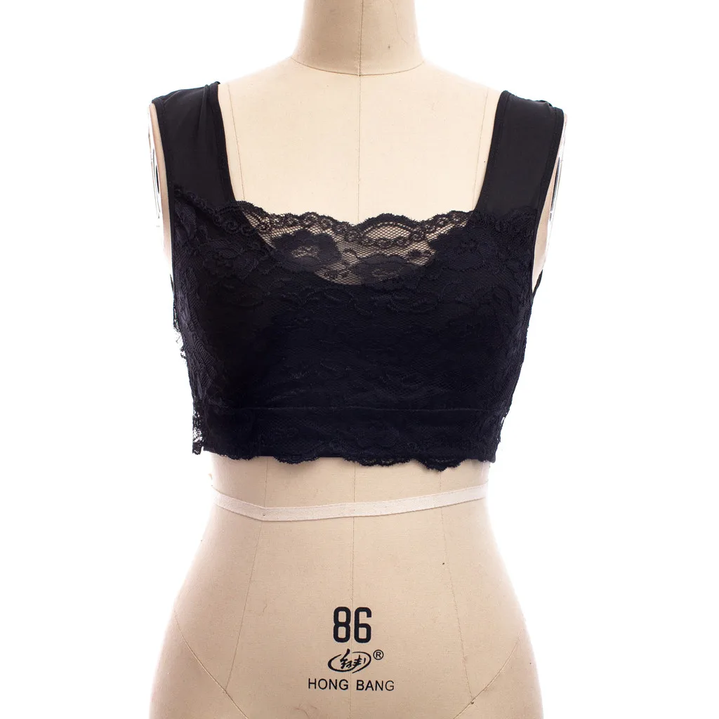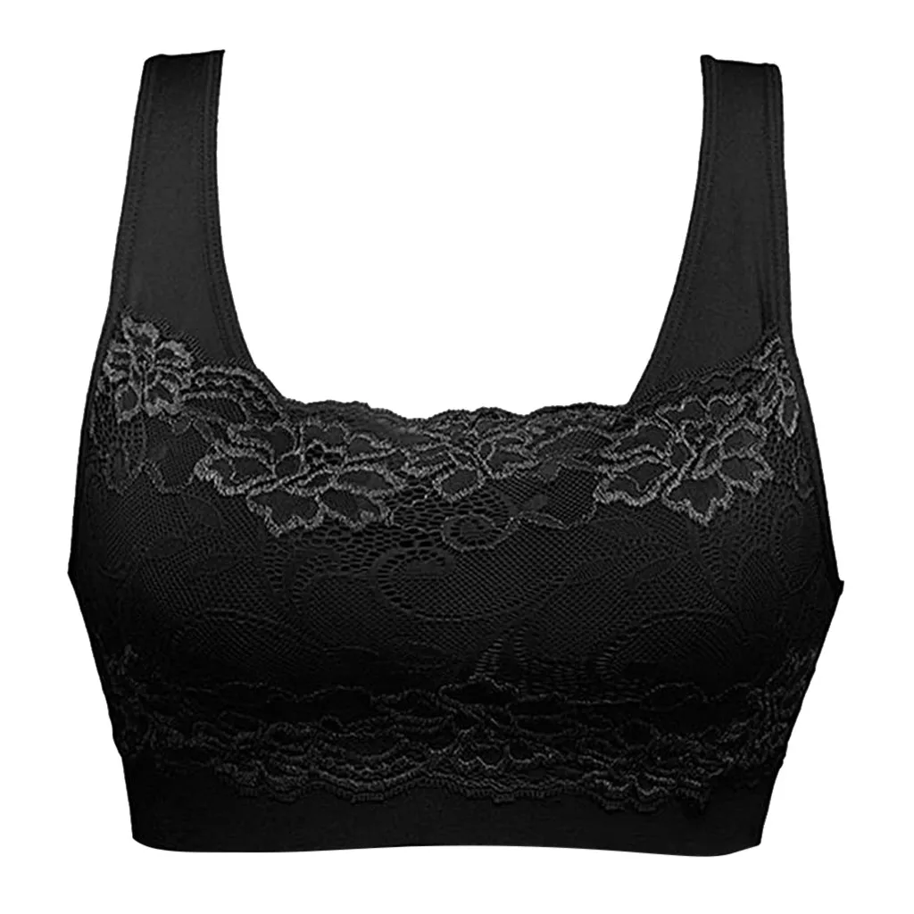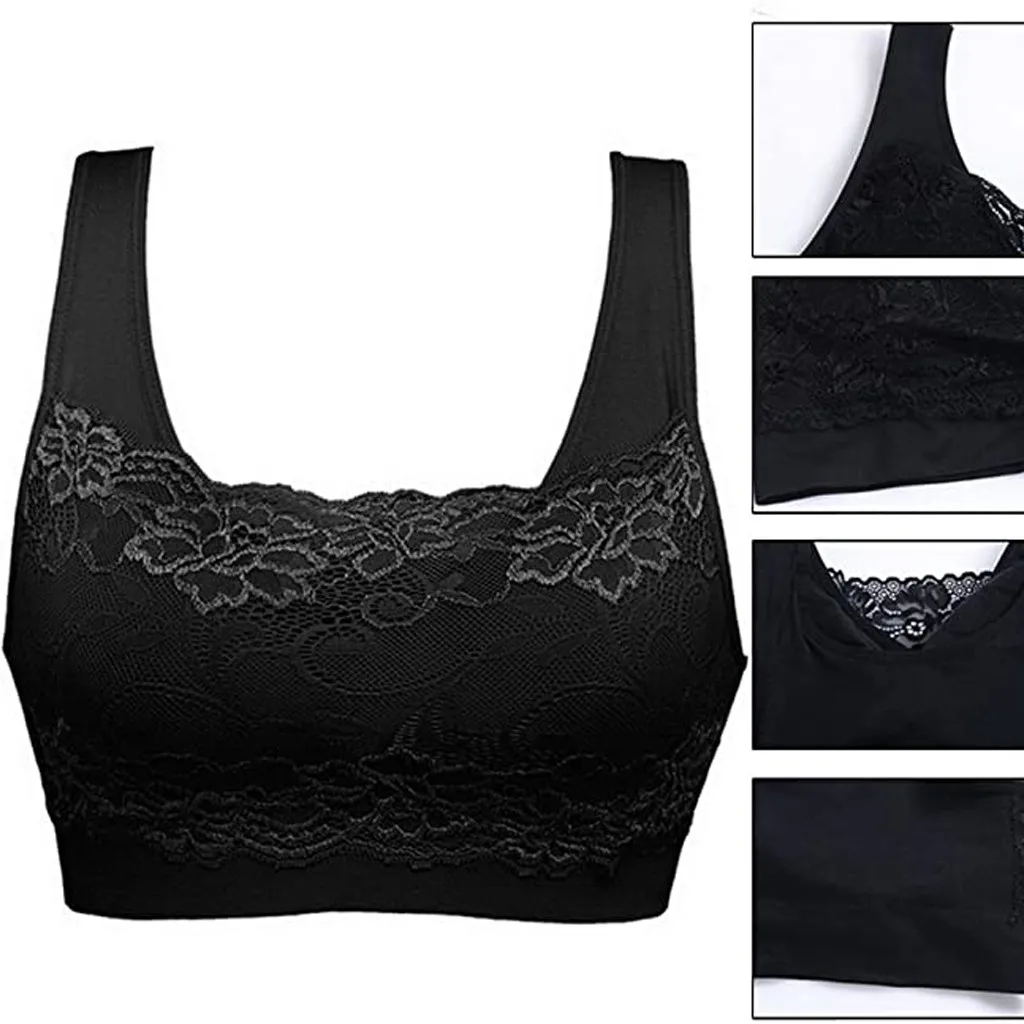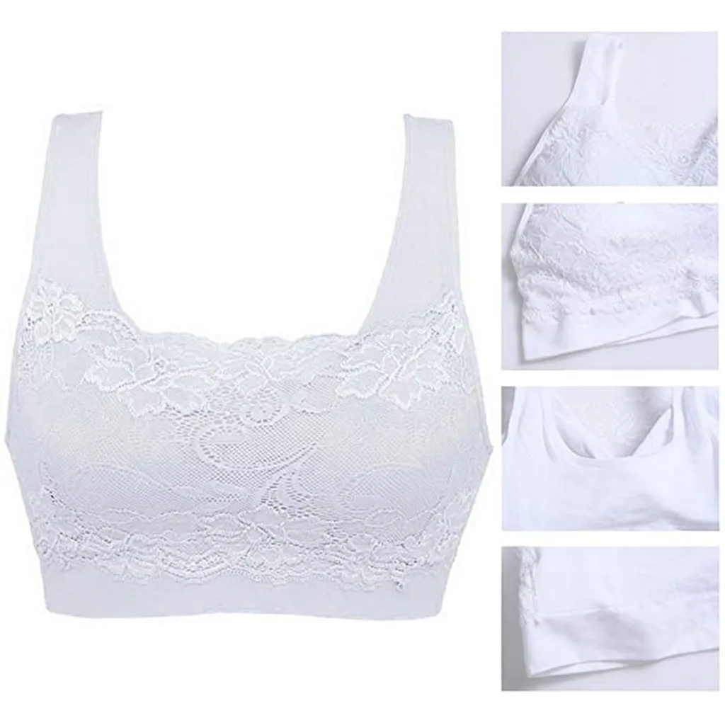Women's Seamless Lace Bra Top With Front Lace Cover Sports Bra
