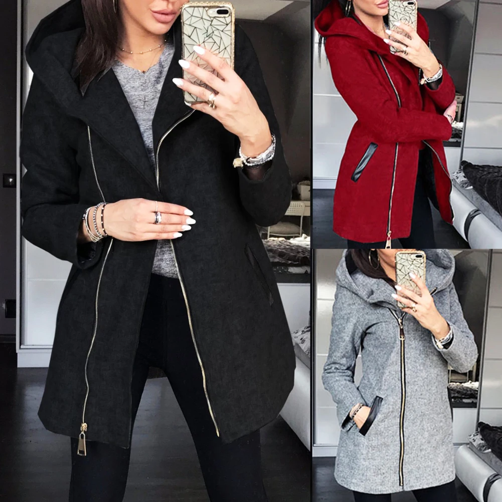 Featuring side zipper pocket and hooded design, beautiful and stylish.