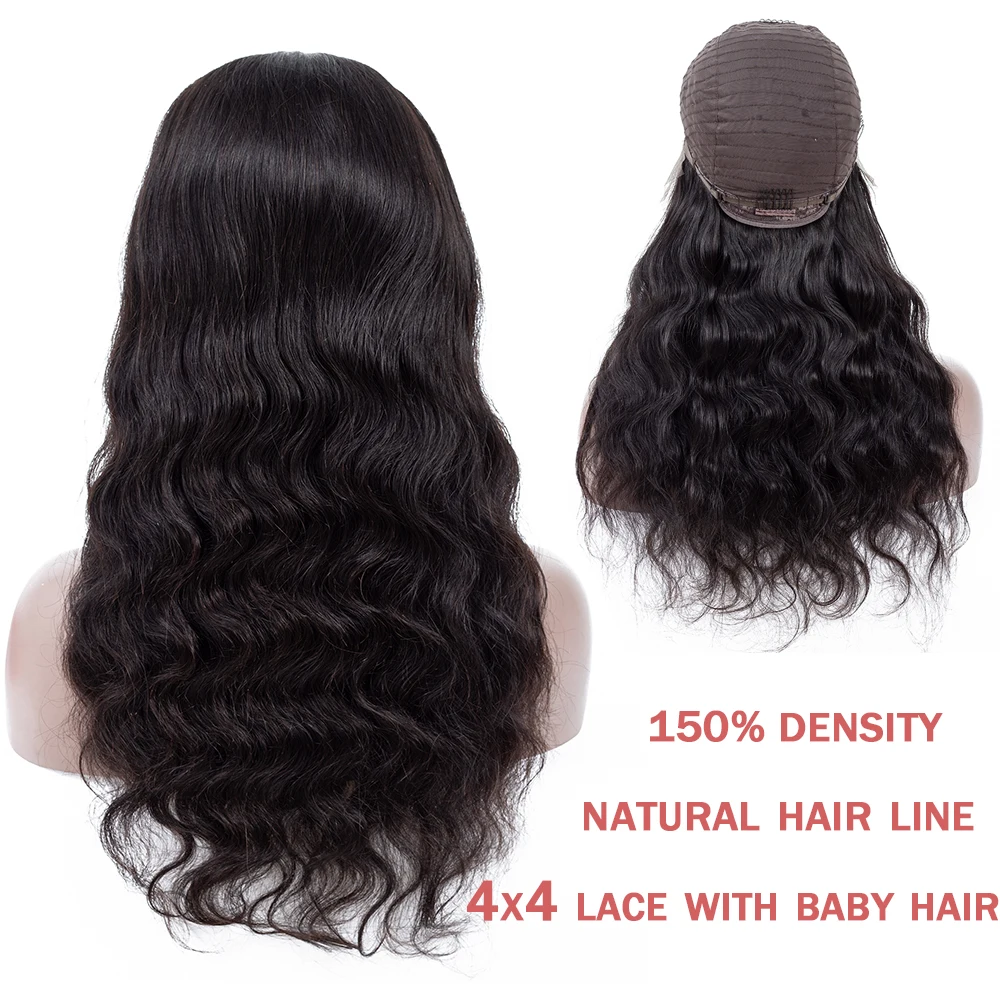US $47.4 QT Hair 30 Inch Brazilian Body Wave Transparent 4x4 Lace Closure Human Hair Remy Wigs Pre Pluck Hair With Baby Hair For Women