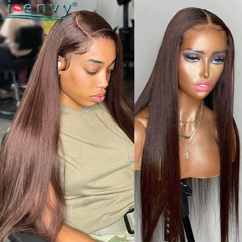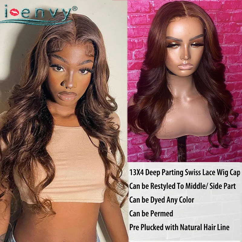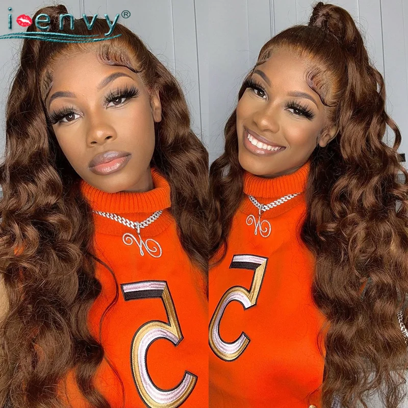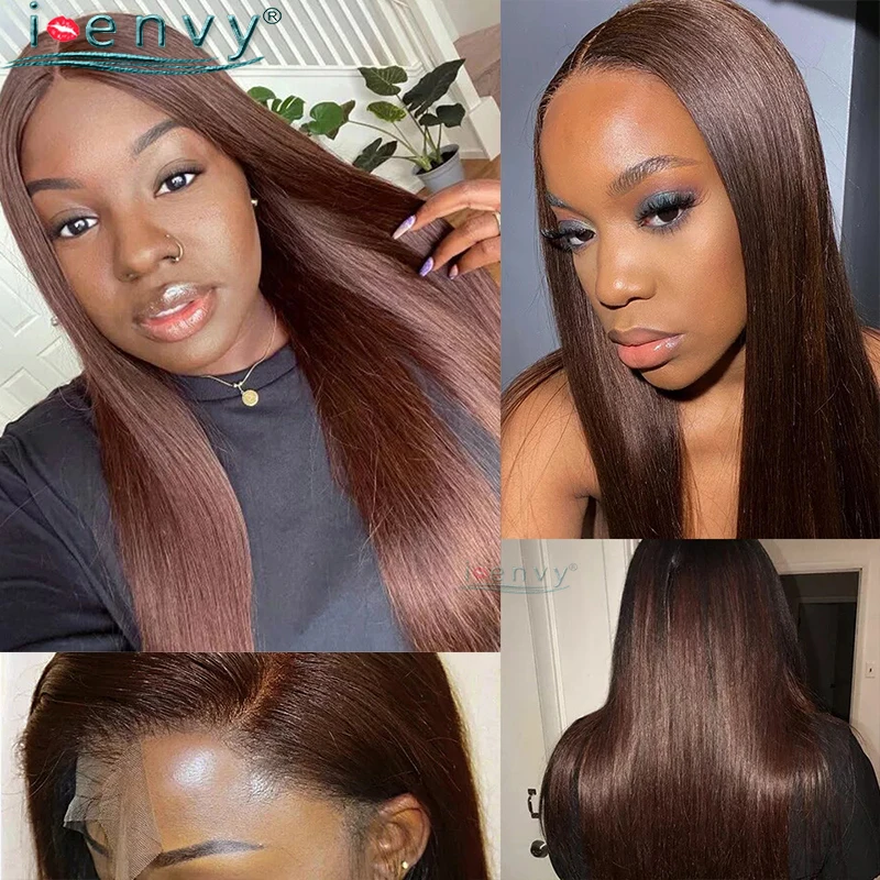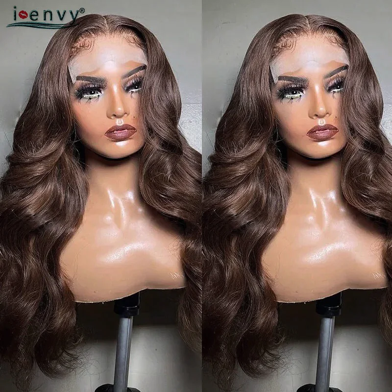 Chocolate Brown Body Wave Lace Front Human Hair Wigs Preplucked Malaysia Brown Colored Straight Human Hair 13×4 Lace Frontal Wig