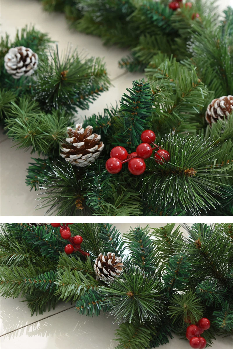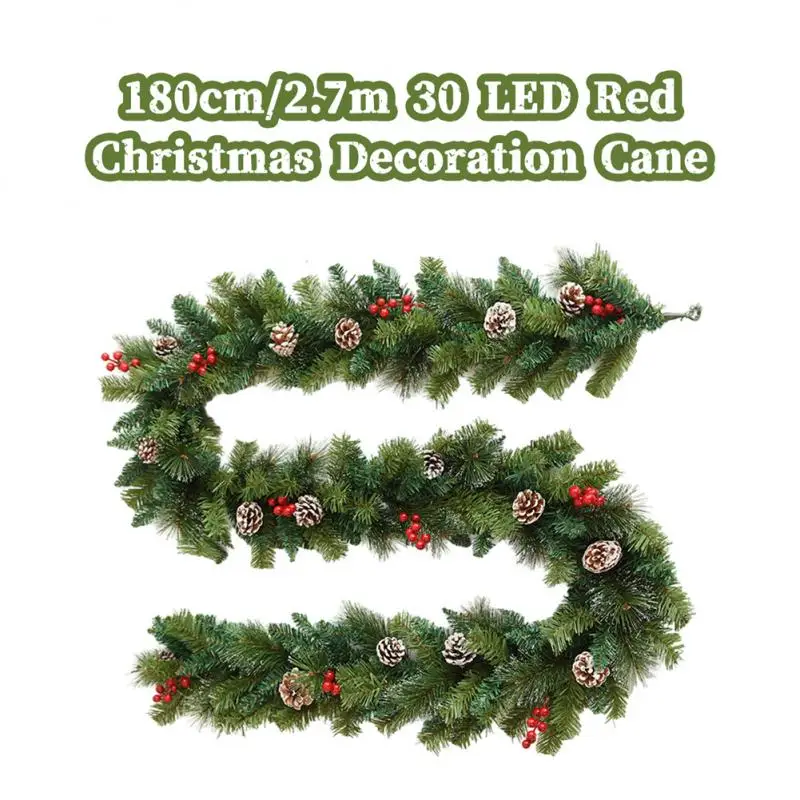 1.8m Christmas Wreath Ornament With 30 LED Lights Red Berry Ornament Garland Artificial Rattan Christmas Tree Wreath Ornament