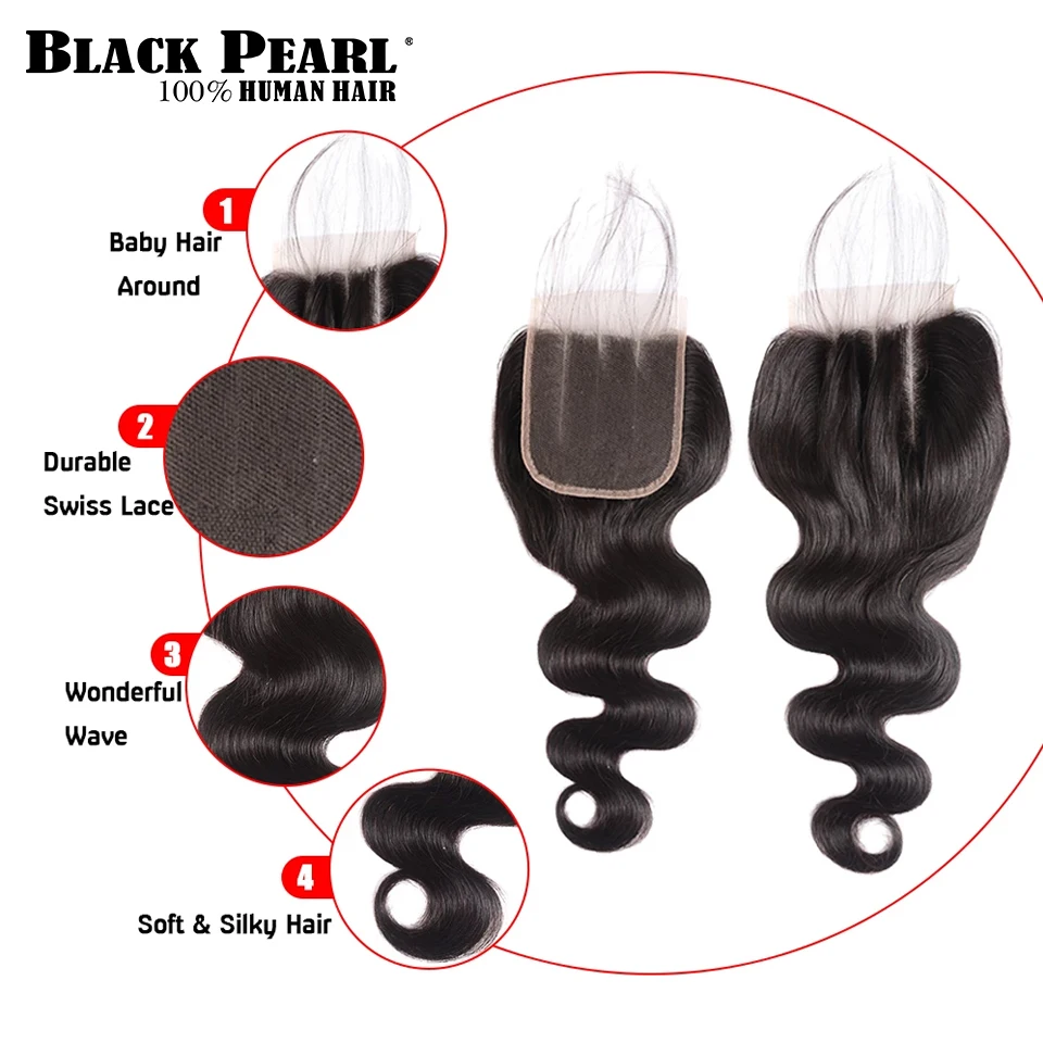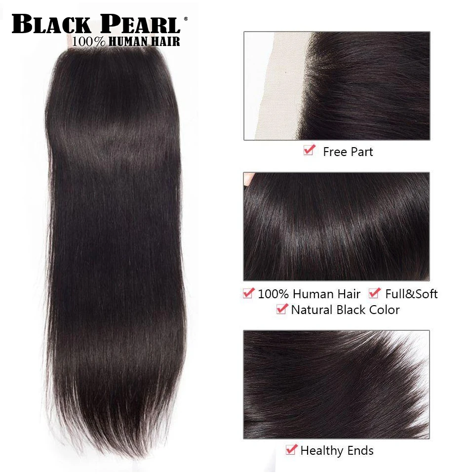 US $19.22 4X4 Closures Only HD Transparent Lace Closure Straight Remy 100% Brazilian Human Hair Natural Black Pre Plucked Bleached Knots