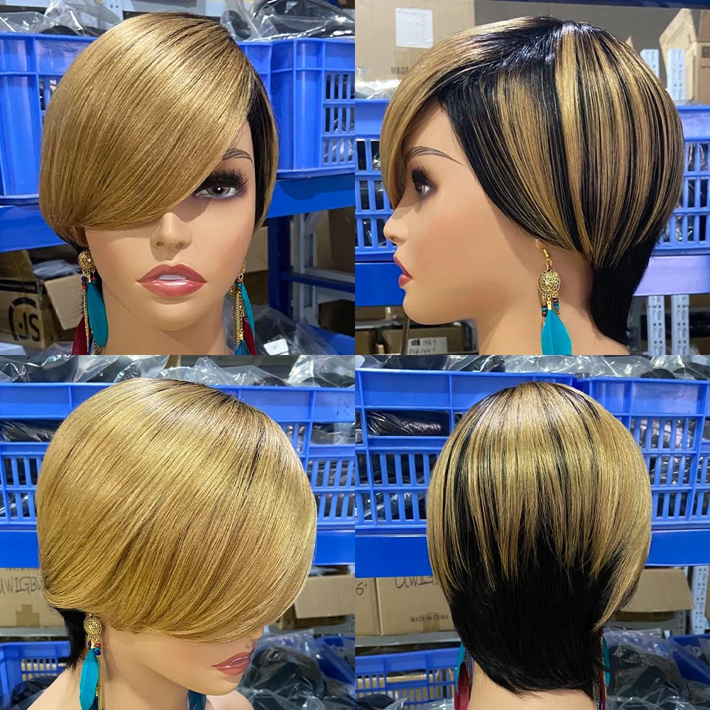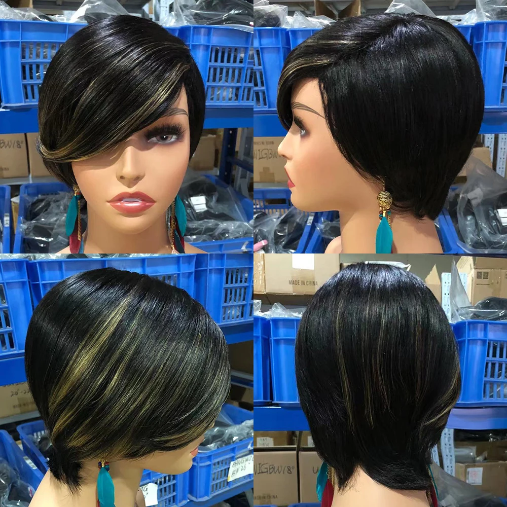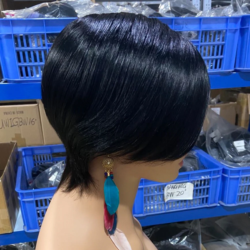 US $24.24SG$ 50% OFF|Human Hair Wigs Short Pixie Cut Wigs Straight Wig Bob Wigs With Bangs Full Machine Made Wigs For Black Women 150% Density - Full Machine Wigs - AliExpress" />