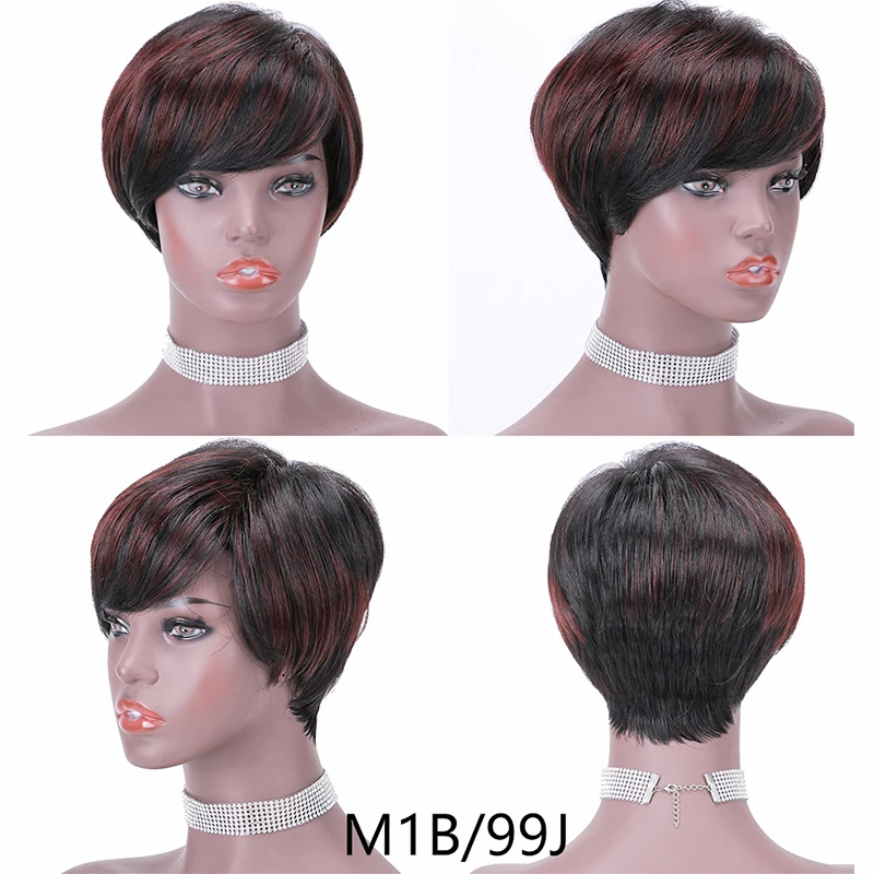 US $29.39SG$ 65% OFF|Pixie Cut Straight Human Hair Wig For Women Brazilian Human Remy Hair Short Bob Machine Made Wig Natural Ombre Color 150% - Full Machine Wigs - AliExpress" />